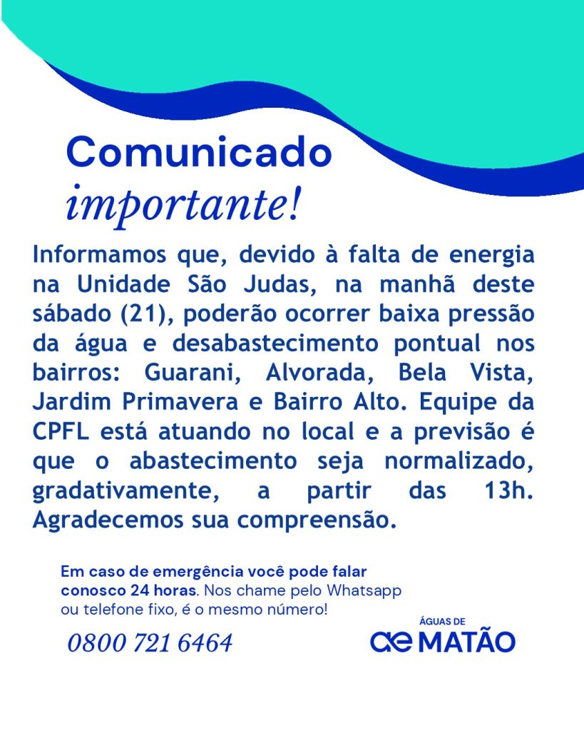 “Nossa relação com a cidade é construída com diálogo aberto e transparência. Olhamos para o futuro com planejamento e investimentos reais em segurança hídrica, como a recente perfuração do poço Santa Cruz”, enfatiza Daniel Mantovani, diretor-presidente da Águas de Matão. “Trabalhamos intensamente para que a população sinta essa segurança na prática, com água de qualidade nas torneiras, garantindo o abastecimento contínuo mesmo quando enfrentamos períodos prolongados de poucas chuvas”, conclui.